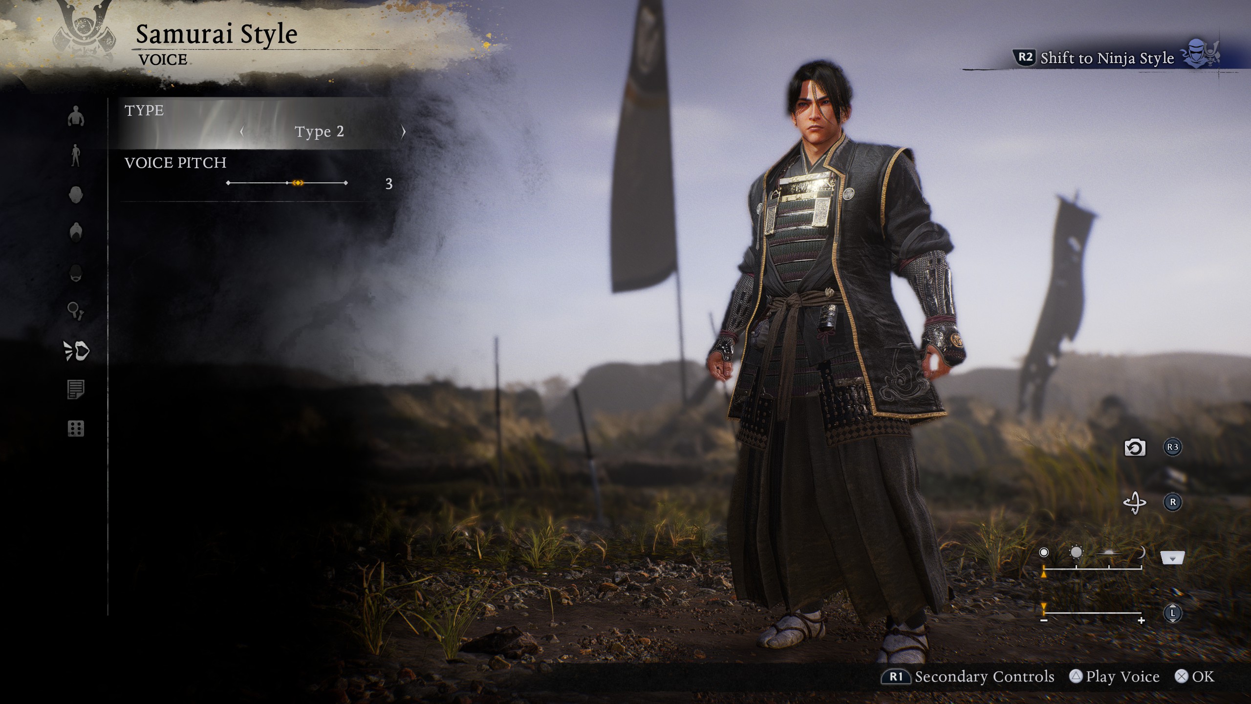 In addition, while Hide was a practically complete mute throughout Nioh 2, Takechiyo does speak a few key quotes in this game's storyline, although their talkativeness is less than William's, the fixed hero of the first Nioh. This could have factored in a smaller lineup of selectable voice sets with only four available in total, although each of them can also have the pitch adjusted to produce a different tone.
