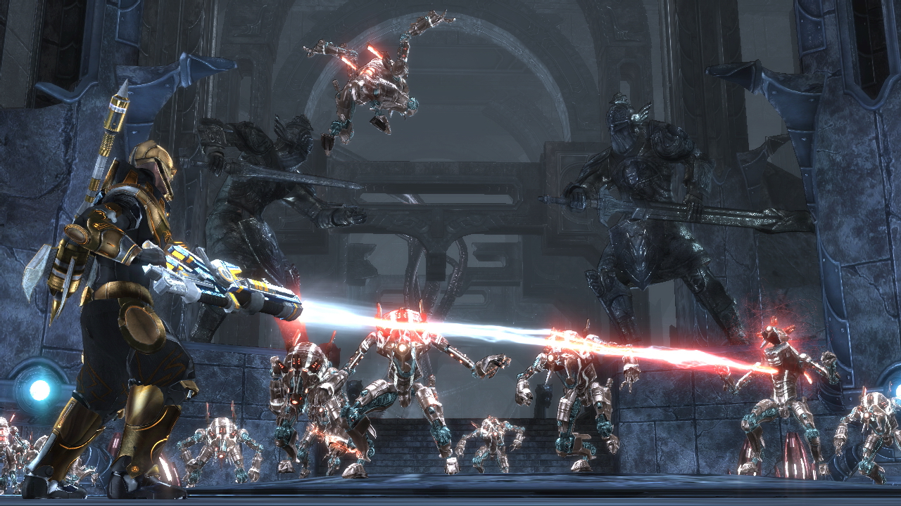 Although the combat system in Ar Tonelico used to be much more of a turn-based affair, Qoga flips the formula on its end and switches to a more high-octane real-time battle system similar to the Tales series. You have your three "vanguards" who are all tasked to protect the defenseless Reyvateils from any bodily harm, who are spending most of the battle singing to accumulate energy that can be used to unleash . Should the enemy get too close inside the "Heroine Field" that surrounds the Reyvateil, their health starts to drop, so players must be quick to expel them outside of the ring, while a cooldown meter controls how quickly a player can do this.